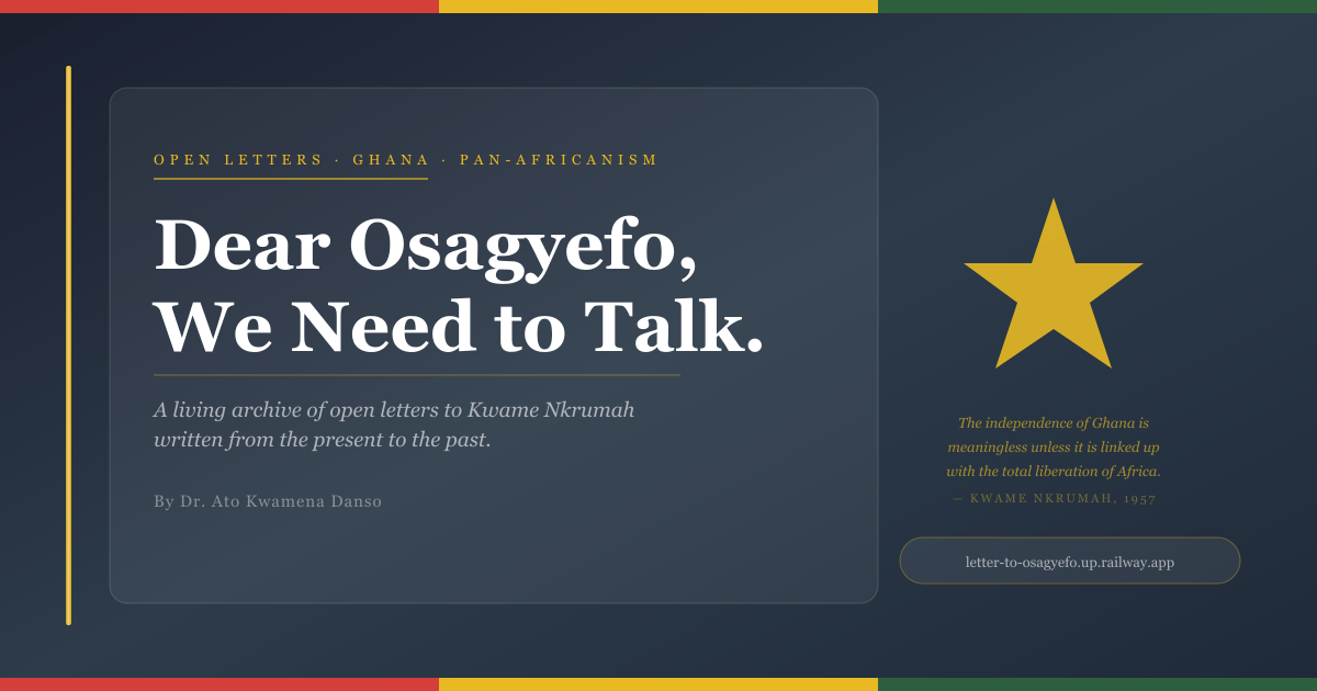 A living archive of open letters to Kwame Nkrumah — witty dispatches from the present to the past.